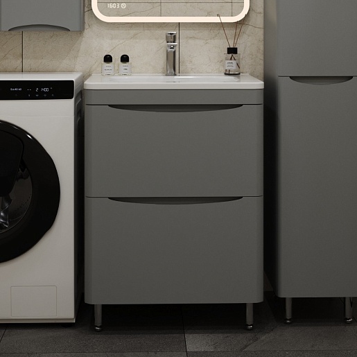 Тумба под раковину Бергамо Мини 60 серая Люкс антискрейтч Plus