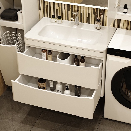 Тумба под раковину Бергамо Мини 80 подвесная белая Люкс антискрейтч Plus