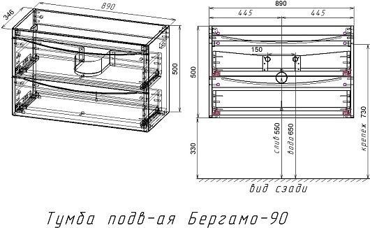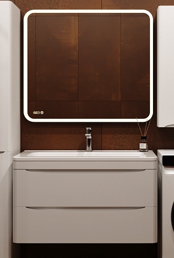 Подвесная тумба с раковиной Style Line Бергамо Мини 90 Люкс антискрейтч Plus белая - арт. СС-00002364 / СС-00002360.