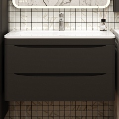 Подвесная тумба с раковиной Style Line Бергамо Мини 90 Люкс антискрейтч Plus черная - арт. СС-00002366 / СС-00002360.
