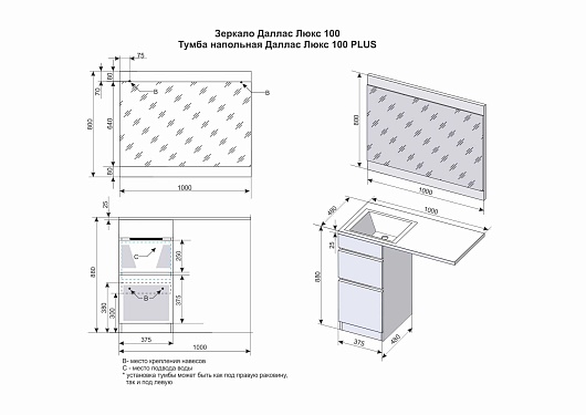 Тумба с раковиной Даллас 100 Люкс R, белая PLUS