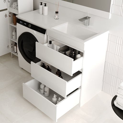 Тумба для умывальника Даллас 120 Люкс Plus 3 ящ., белая