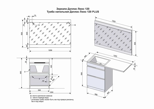 Тумба с раковиной Даллас 120 Люкс R, белая