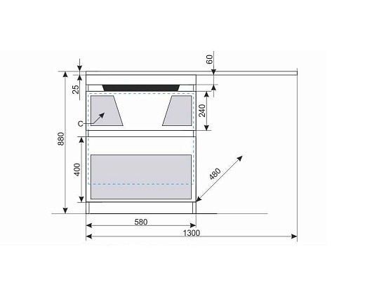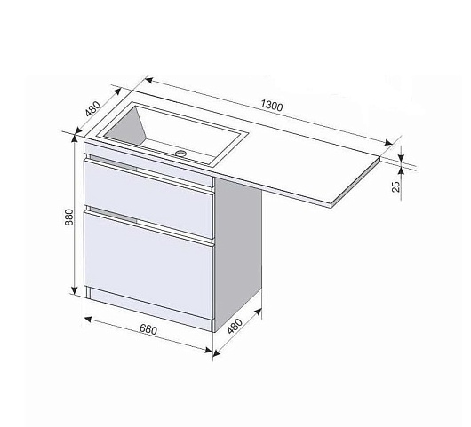 - мебельная раковина Даллас 130 R.