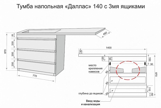 - мебельная раковина из литьевого мрамора Даллас 140 L, арт. СС-00002220.