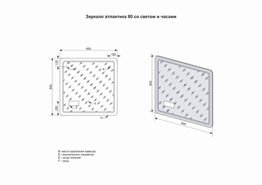 Описание: влагостойкое зеркальное полотно, встроенная светодиодная подсветка, сенсор на зеркале, электронные часы.