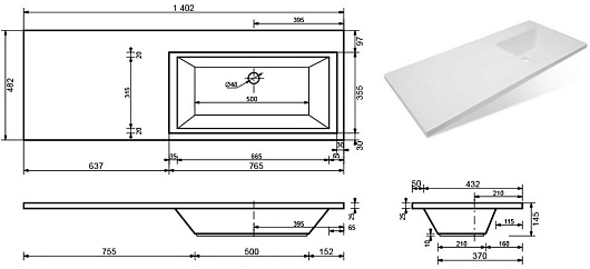 Подвесная тумба под раковину Style Line Даллас 140 R 2 ящика - арт. СС-00002337 / СС-00002215.