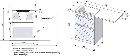 - Подходит под установку стиральной машины.