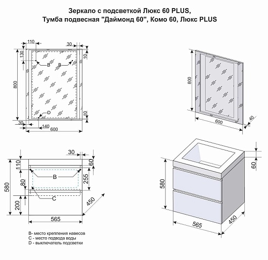 Style Line Мебель для ванной Даймонд 60 Люкс белая, PLUS подвесная