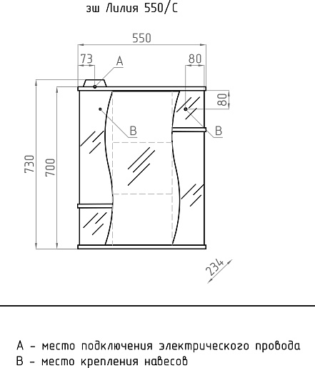 - Размеры (ШхГхВ): 550х234х730 мм.