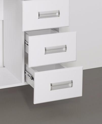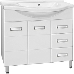 - напольная тумба под раковину: 2 распашные дверцы, 3 выдвижных ящика, врезные ручки с комбинированным покрытием хром и матовый хром, ножки