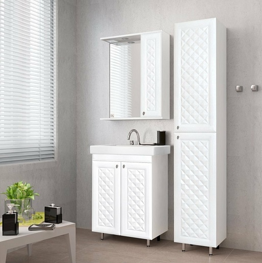 В комплекте: тумба, раковина, зеркальный шкаф, ножка (4 шт.).