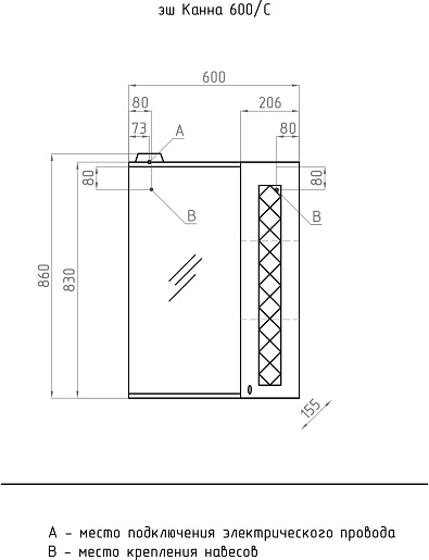- Размеры (ШхГхВ): 600х155х860 мм.