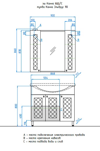 Зеркальный шкаф Канна 900/С