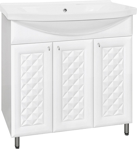 - напольная тумба под раковину: 3 распашных дверцы, хромированные ручки, ножки