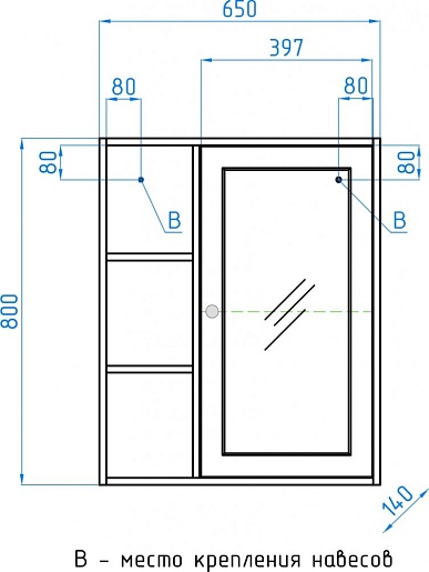 - Размеры (ШхГхВ): 650х140х800 мм.