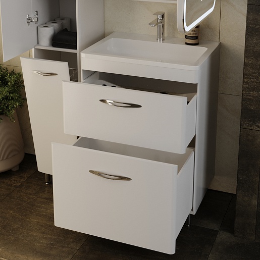 Тумба для умывальника Каре 60 напольная Люкс белая, PLUS