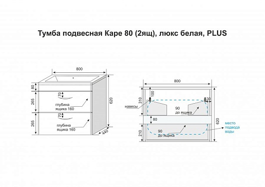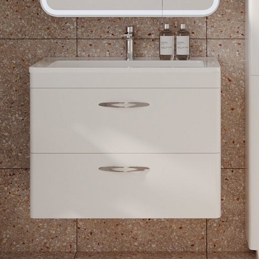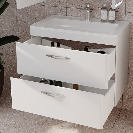 Тумба для умывальника Каре 80 подвесная Люкс белая, PLUS