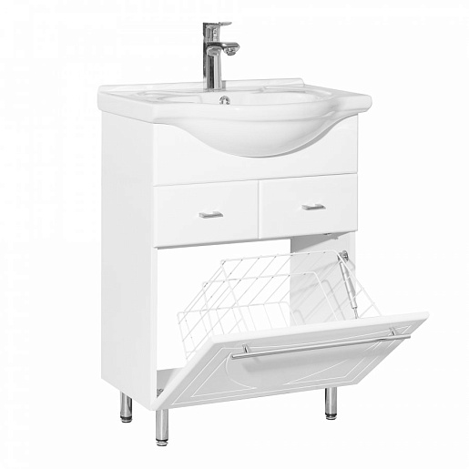 Комплектация: тумба с ящиками и корзиной для белья, умывальник Байкал 60.