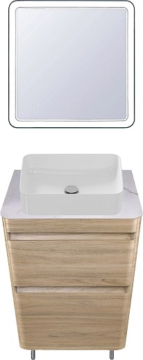 В комплекте: тумба, раковина, столешница, зеркало, ножка (4 шт.), крепеж.