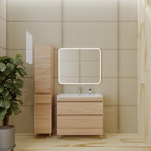 Тумба для умывальника напольная Атлантика 90, Люкс, ясень перламутр, PLUS