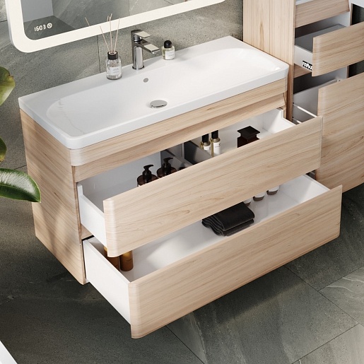 Тумба для умывальника подвесная Атлантика 100, Люкс, ясень перламутр, PLUS