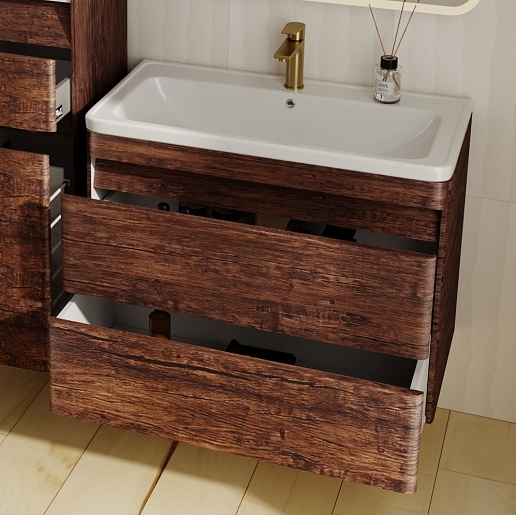 Тумба для умывальника подвесная Атлантика 80, Люкс, старое дерево, PLUS