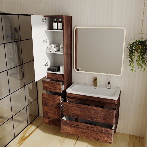 Style Line Мебель для ванной подвесная Атлантика 80, Люкс старое дерево, PLUS