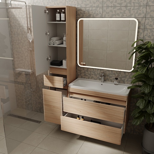 Тумба для умывальника подвесная Атлантика 90, Люкс, ясень перламутр, PLUS