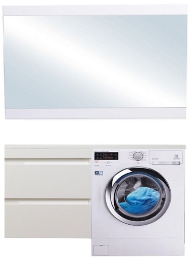 Описание: влагостойкое зеркальное полотно, сверху и снизу декорированное ЛДСП-планками. Покрытие - пленка белого цвета.