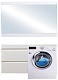 Описание: влагостойкое зеркальное полотно, сверху и снизу декорированное ЛДСП-планками. Покрытие - пленка белого цвета.