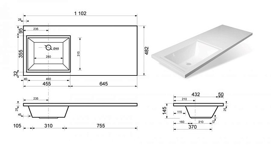 - арт. СС-00000442 мебельная раковина Даллас 110 L.