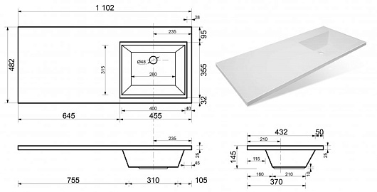 - арт. СС-00000439 мебельная раковина Даллас 110 R.