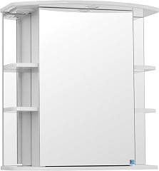 Описание: шкафчик с зеркальным распашным фасадом, боковые открытые полки. В козырьке встроенный светильник, выключатель с розеткой.