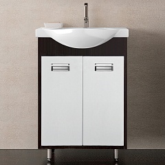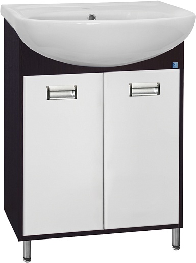 - напольная тумба под раковину: 2 распашные дверцы, врезные ручки с комбинированным покрытием хром и матовый хром, ножки.