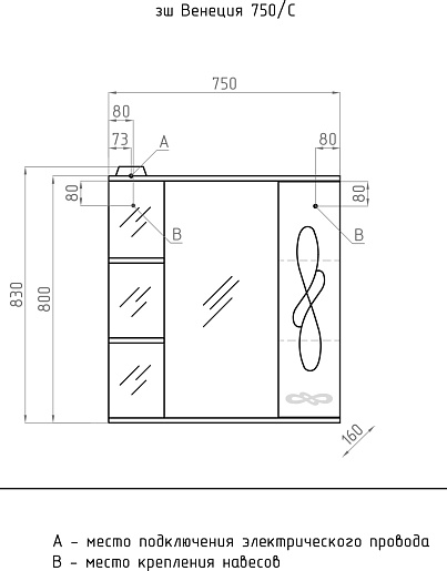 Зеркальный шкаф Венеция - 750/C