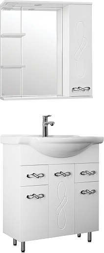 В комплекте: тумба, раковина, зеркальный шкаф, ножка (4 шт.).