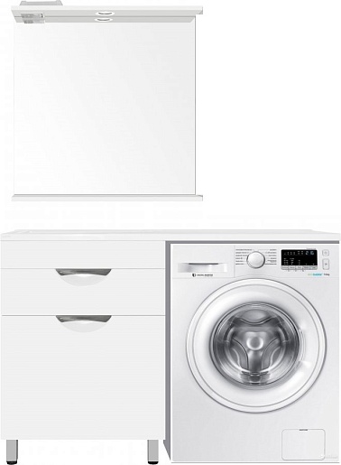 - напольная тумба под раковину: ящик, распашная дверца, корзина для белья, ножки