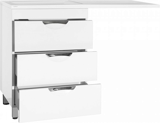 - напольная тумба под раковину: три ящика, ножки