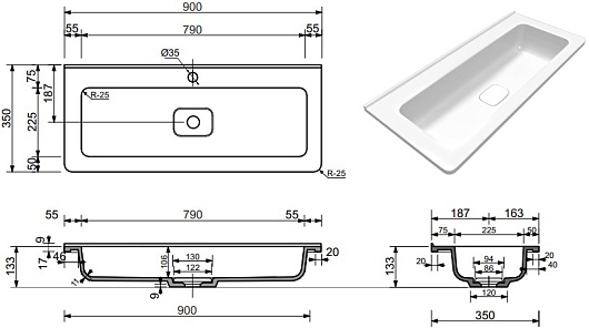 Раковина мебельная Style Line Эстет Каре Мини 90 Люкс - арт. СС-00002360.