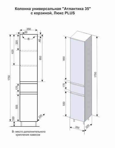 Шкаф-пенал Атлантика 35 Люкс Plus - 1 шт.