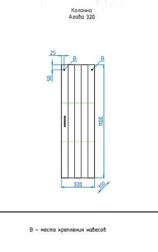Описание: Подвесной пенал для ванной с распашным фасадом и внутренними полками.
