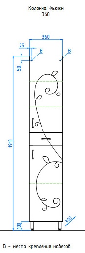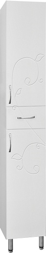 Описание: Напольный пенал для ванной с двумя распашными дверцами с внутренними полками и выдвижным ящиком. Декоративная фрезеровка фасадов.