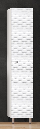 Описание: Напольный пенал для ванной с двумя распашными дверцами и системой "Push to open". Декоративная 3D-фрезеровка фасада.