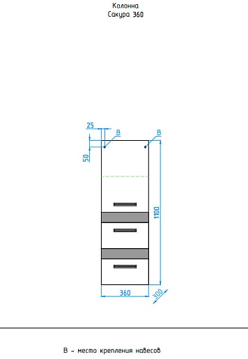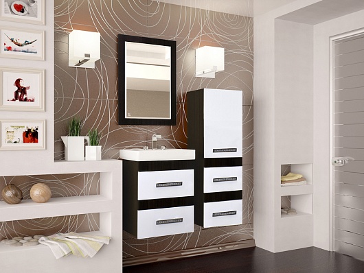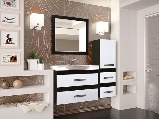 Описание: Подвесной пенал для ванной с выдвижными ящиками и распашной дверцей. Хромированные декоративные ручки.