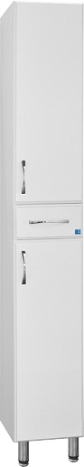 Описание: Напольный пенал для ванной с двумя распашными дверцами с внутренними полками и выдвижным ящиком.