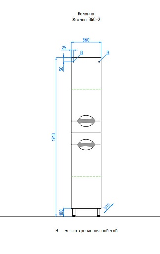 Размеры ШхГхВ: 360х300х1910 мм.