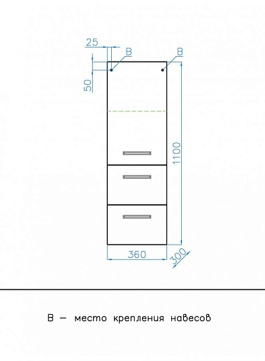 Описание: подвесной шкаф-пенал с двумя ящиками и распашным фасадом. В комплектацию входят крепления и доводчики.