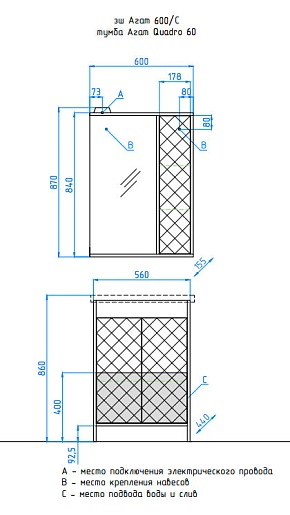 Размеры ШxГхВ: 560х440х860 мм.