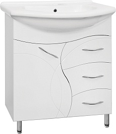 - напольная тумба под раковину: распашная дверца, 3 выдвижных ящика, хромированные ручки, ножки